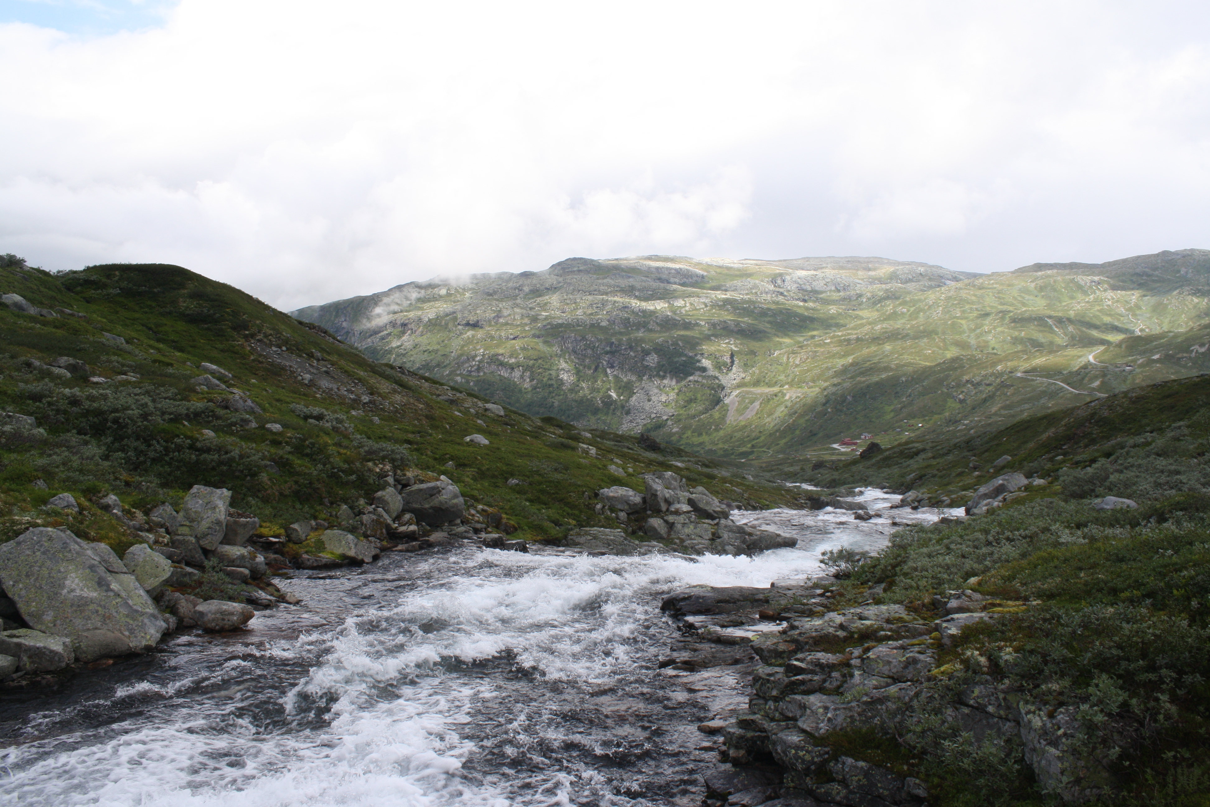 A whirlwind tour of the Jotunheimen and Gudbrandsdalen regions of Norway last week took us along broad sweeps of verdant river valleys, icy blue-green glacial melt rivers and mountain-side waterfalls, fields of alpine berries and wild-flowers, upland farms and majestic mountains. A place of magnificent nature surrounded by peaks partially clad in snow, mountain meadows purple with heather in bloom, and rivers sparkling green like liquid emeralds. Though heavy rain was predicted we were blessed with mostly sunny weather and mild late summer temperatures.
