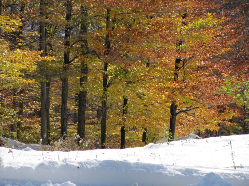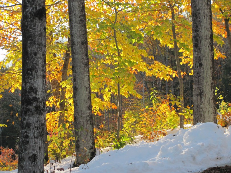 It has been a whirlwind of crazy weather in southern Vermont these past few days. A few days ago a light snow shower – a hint of winter to come – followed by a glorious sunny day, leaves still ablaze on some trees. Today a clear and sunny day on the heels of an October storm that graced us with over one foot of snow. Winter in the northern hemisphere is inevitable at this point, and as much as I struggle with the darker, shorter days of winter – I do love a snowy winter. And though I am no stranger to November’s indecisive weather – always in the throes of change – it is super strange to see bright yellow leaves still on the trees against a backdrop of pure white. Two seasons in full glory at the same time.