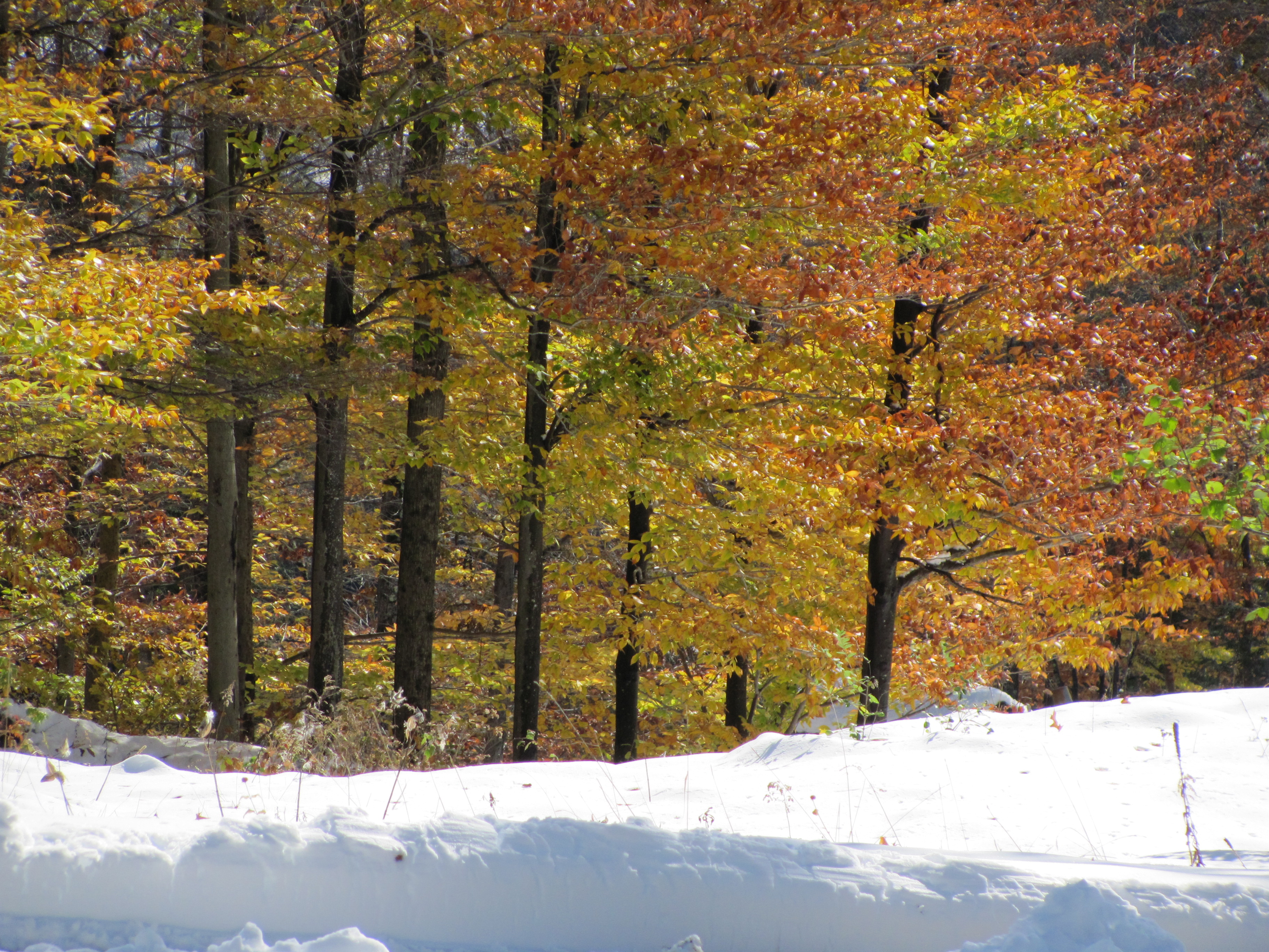 I love this kind of photos in which fall colors and snow are combined! The third photo is awesome!