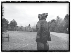 Last weekend a trip north in search of some Easter skiing – a spring tradition in the mountains of Norway. But in Vermont – a rare occasion. And one that required a drive to Jay – just shy of the Canadian border. A plethora of chainsaw carved bears, a crossroads. A wooded wilderness landscape with broad valleys for farming. Now a four-season tourist destination. At Jay Peak, soft spring corn snow on groomed trails, snow flurries, a water-park. The sun and full moon hiding under cover of clouds, beautiful views in every direction.
