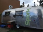 Eating well on the road can be a challenge. But traveling does not have to mean bad food and relying on fast food and sugar-laden free hotel breakfasts. Filling a travel larder can be an adventure of yummy local food possibilities. Budget friendly picnics along the road and in hotel rooms. Eating outside in nature when the weather allows. In Oregon, an emphasis on good food, with a northwest flair. Farmer’s markets and food carts, bakeries and coffee shops galore, small-scale production and farming. Hearty, hand-crafted bread and hazelnut granola, cardamom brioche. Willamette Valley pinot noir and Columbia Valley zinfandel. Spicy codfish tacos. Fresh orchard cherries, firm and sweet. Goat cheese, sharp and tangy. Wild mushrooms. Pacific salmon. Regional foods and flavors from other lands. In Portland, a delicious and unexpected taste of Norway, served fresh from a silver trailer named Gudrun. Home-made lefse from the Viking Soul Food cart in the GoodFoodHere lot. A taste of home, with new twists, the perfect combination.
