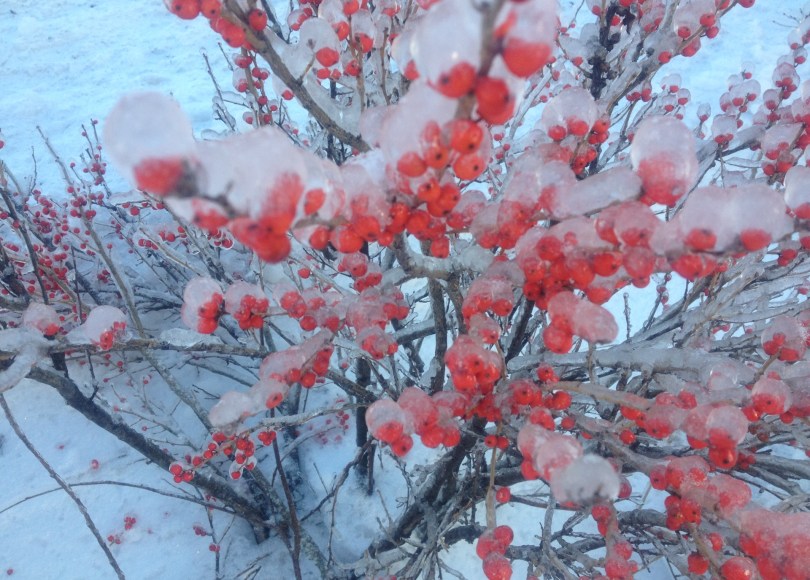 A soft white snow falling gently this morning, the landscape hushed. The past week a whirlwind of holiday activity and travel, with crazy extremes in weather. Sunshine and picnic-on-the-beach temperatures on Cape Cod. In southern Vermont, a foot of beautiful fluffy snow, followed by rain and a dense fog. A ferocious winter storm in northern Vermont. Houses, cars, trees and roadways covered with a thick coat of ice, dangerous conditions for vegetation and people. After the storm, a frozen landscape that shimmered and sparkled in the sunshine. Inside, freshly baked bread and cookies, the air sweet with cardamom, decorations hung. Presents wrapped and unwrapped. Candles lit, the hope of longer days to come. In spaces between the hectic pace of the season and long stretches on the road, precious moments with friends and family, hearts full.